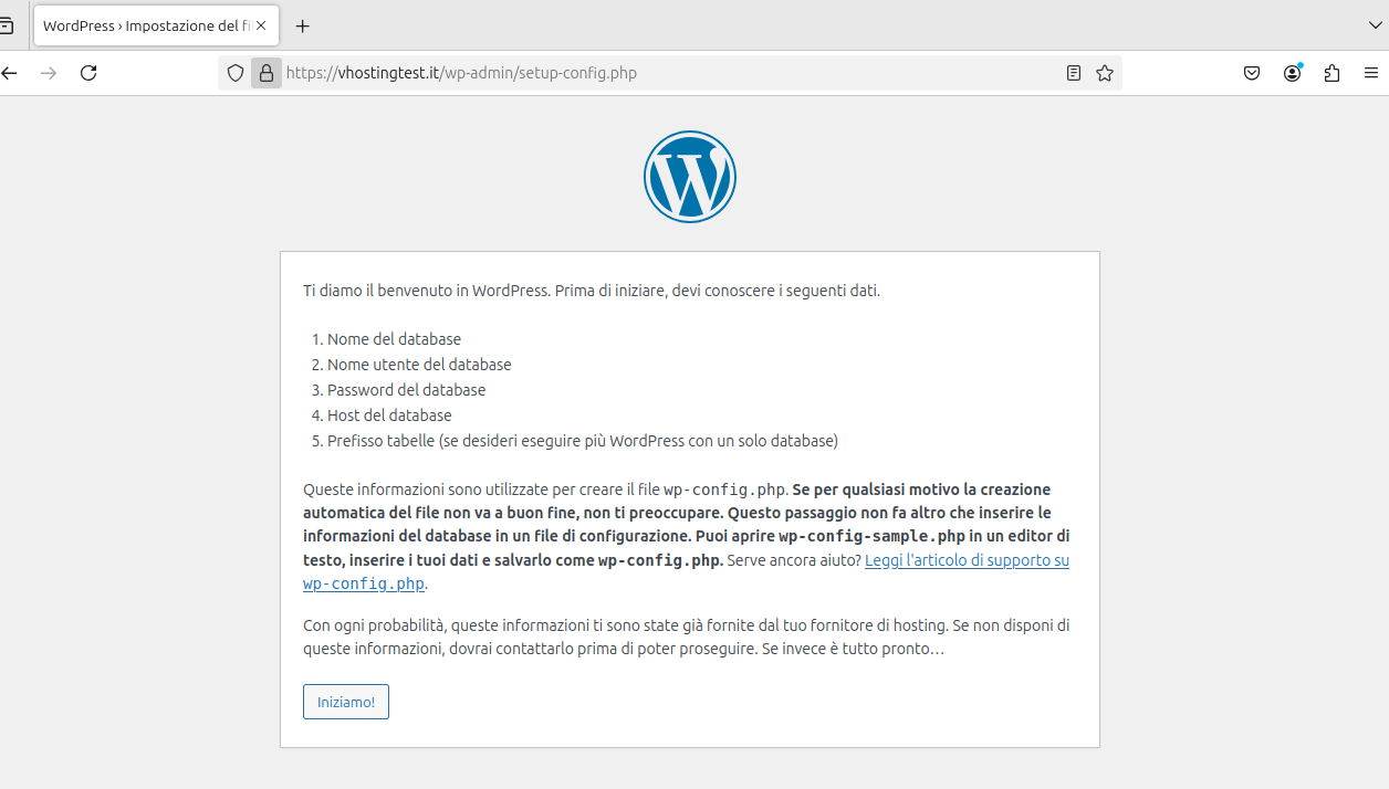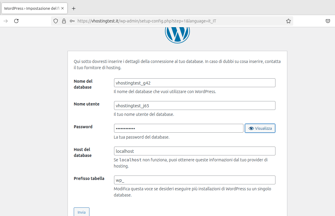 Si può andare quindi ora sull’url del sito da installare. In questo esempio verrà utilizzato vhostingtest.it