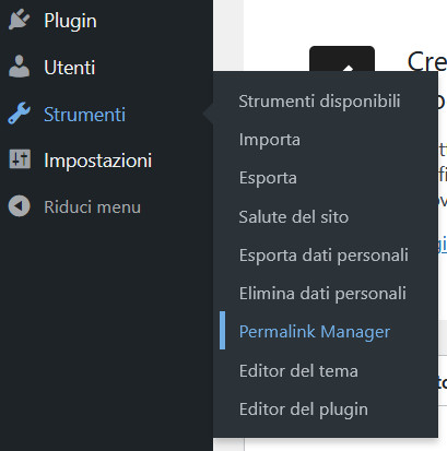 Dopo l’installazione e l’attivazione, andare su “Strumenti – Permalink Manager”.